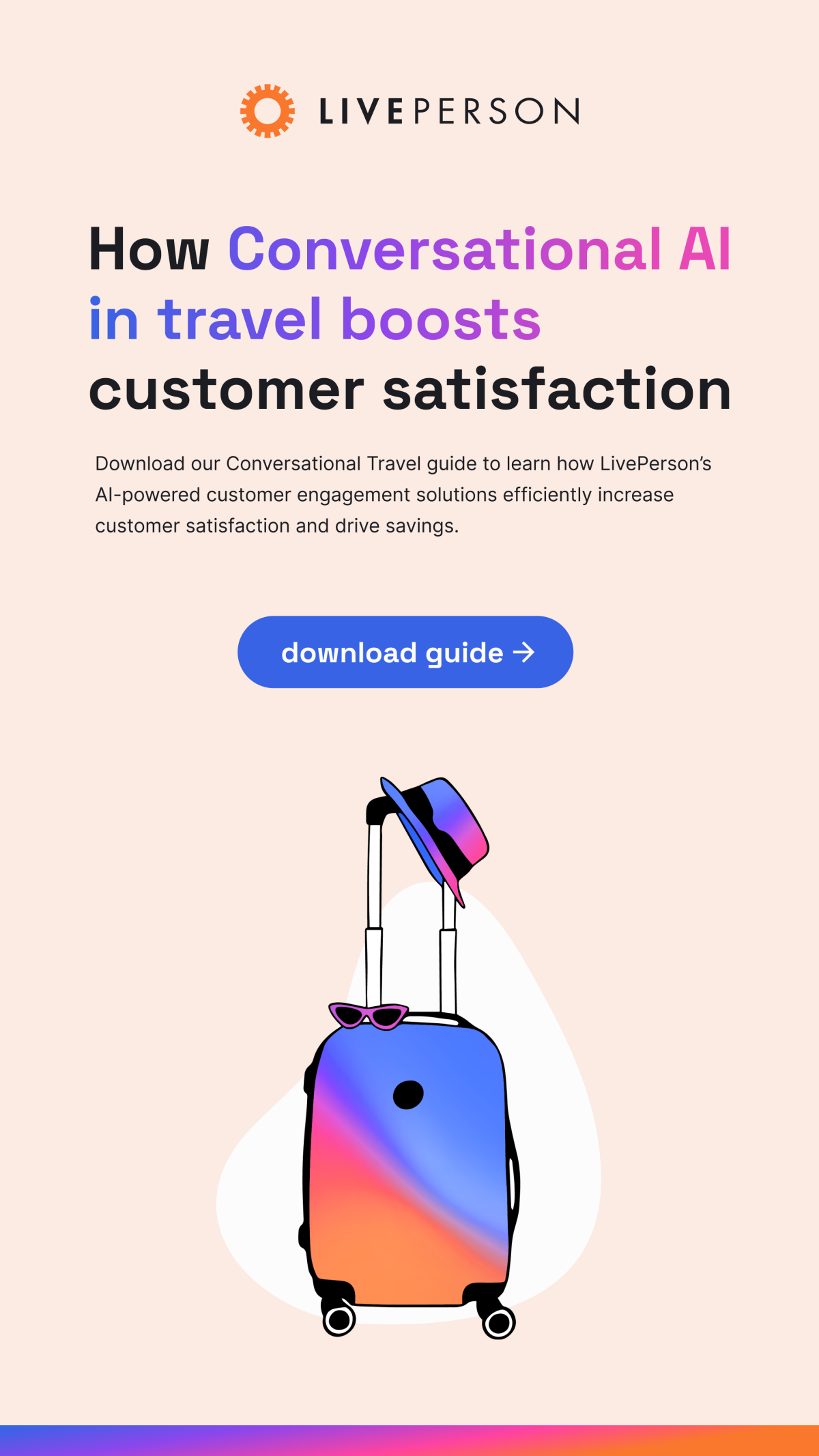 LivePerson (NASDAQ:LPSN) is a leading Conversational AI company creating digital experiences for better business outcomes. Every person is unique, and our technology makes it possible for companies to treat their audiences that way at scale. Our customers, including leading brands like Hawaiian Airlines, Spirit, and Hotwire, can now meet consumers where they are across social media, messaging, email, voice, and more. Nearly a billion conversational interactions are powered by our Conversational Cloud each month. Out of that comes a uniquely rich data set for AI for brands to build connections that are anything but artificial. To talk with us or our Conversational AI, please visit liveperson.com